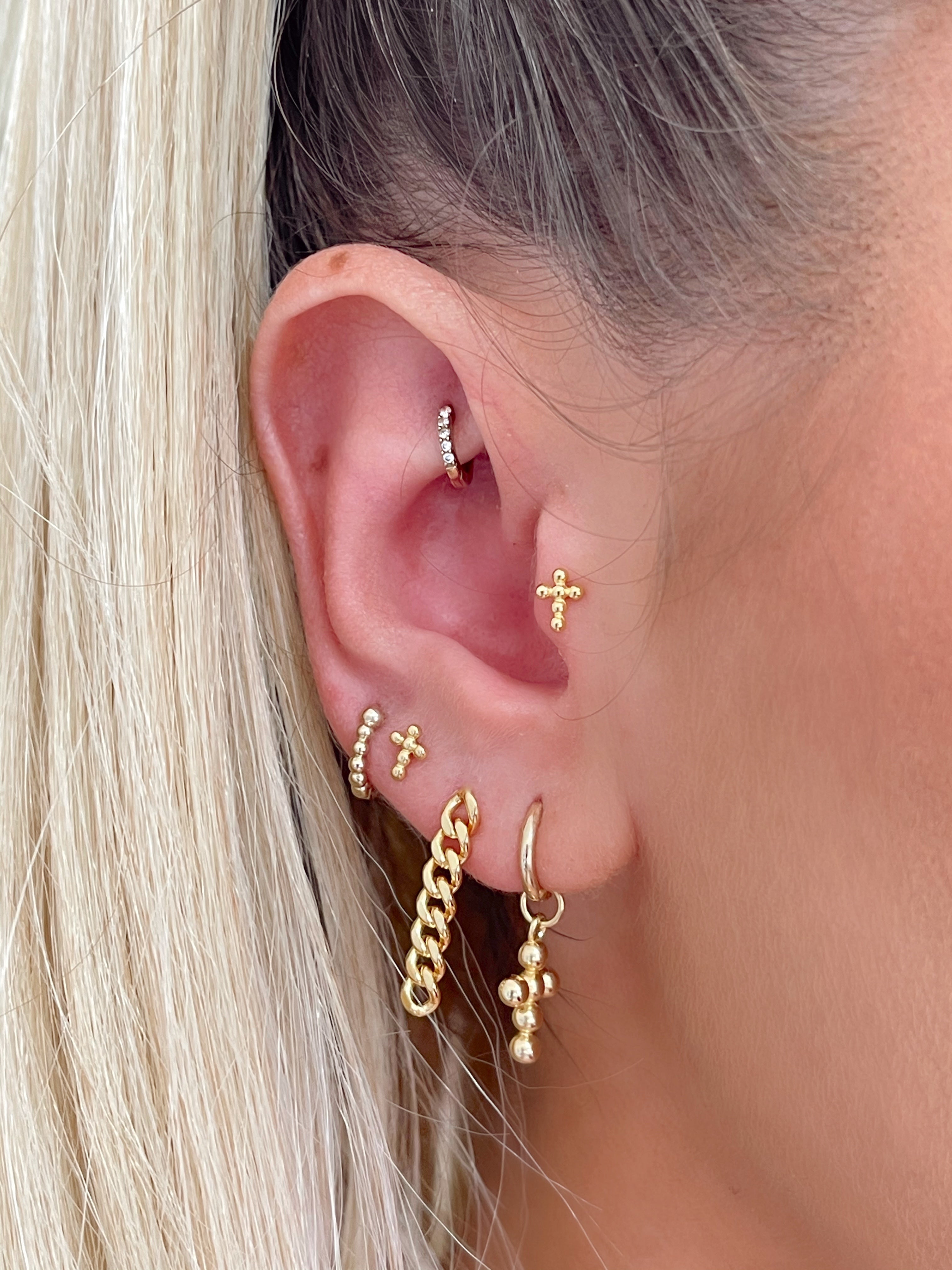 Our Mini Cross studs are the perfect mini stud to compliment a minimalistic look. These studs can be paired with our huggies & charms to create an elegant ear stack!