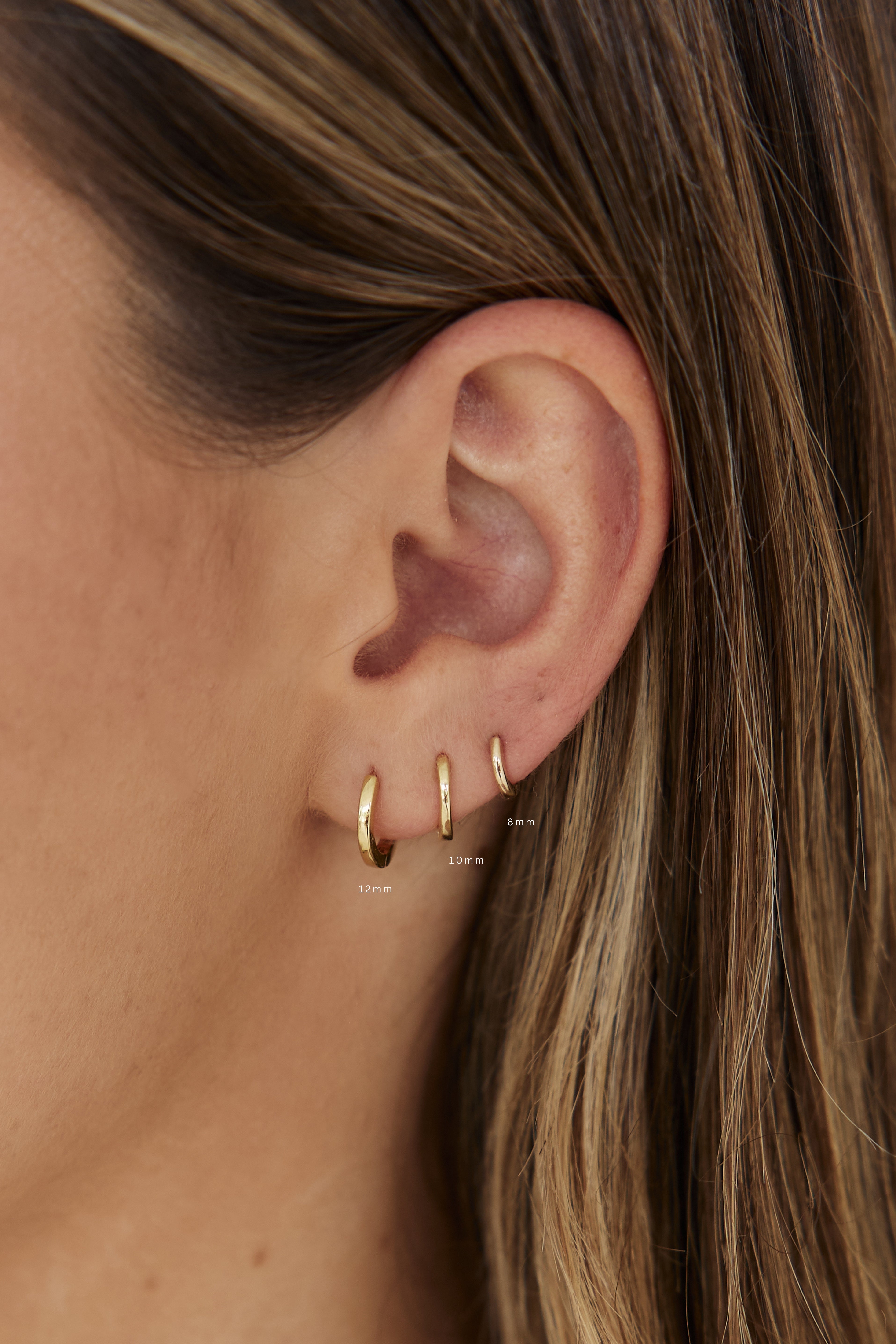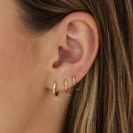 Our Single 14k Gold Milan Huggie is the ultimate everyday essential. It can be worn solo on your lobe, stacked in seconds or thirds, or in your cartilage piercings. This Huggie is perfect for a simple look that fits seamlessly into both your lifestyle and work routine.