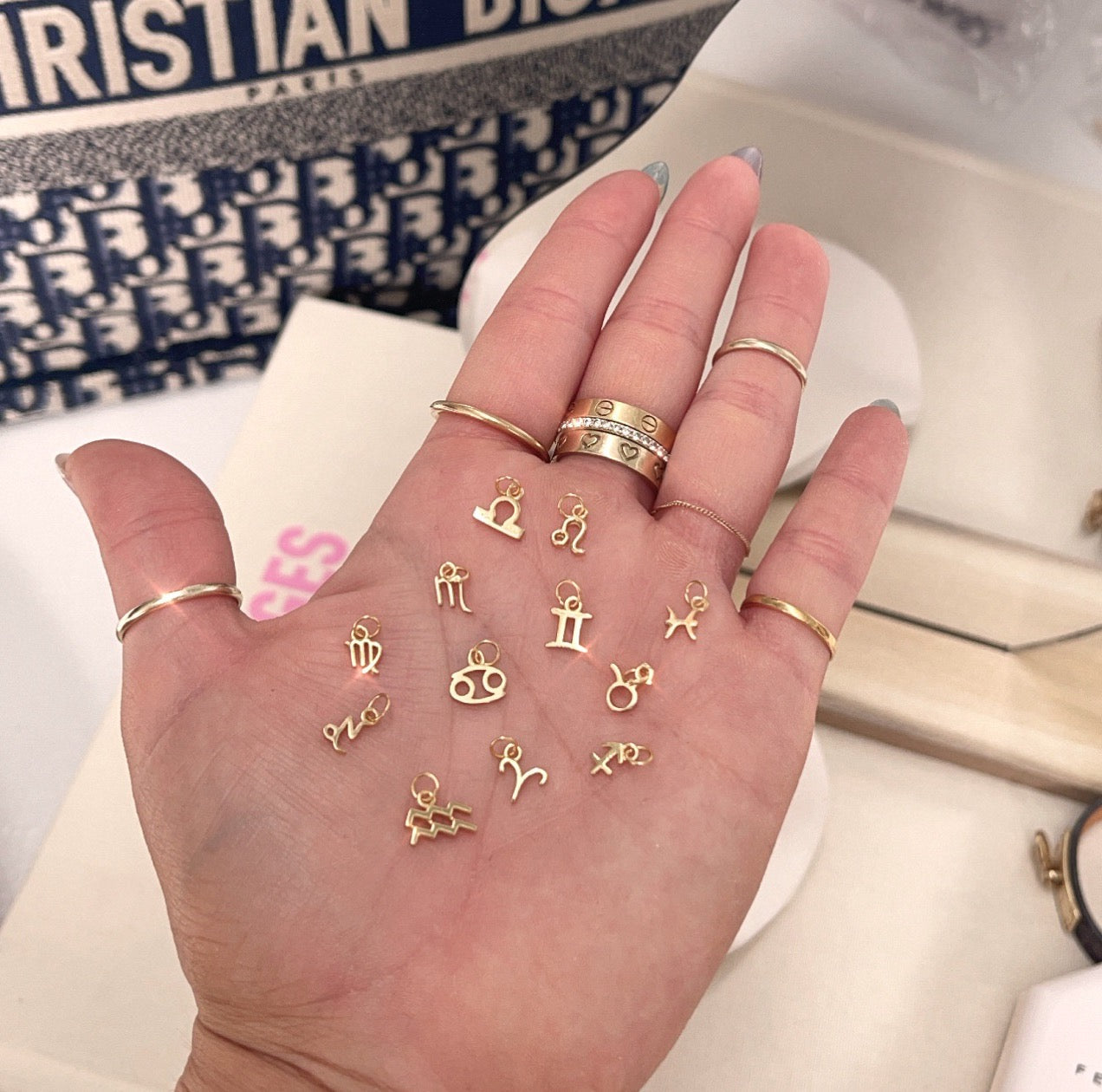 Our gorgeous Mini Zodiac charms can be worn on our Everyday Necklace, Cuban Necklace, Athena Rope Necklace & All Huggies / Sleepers!