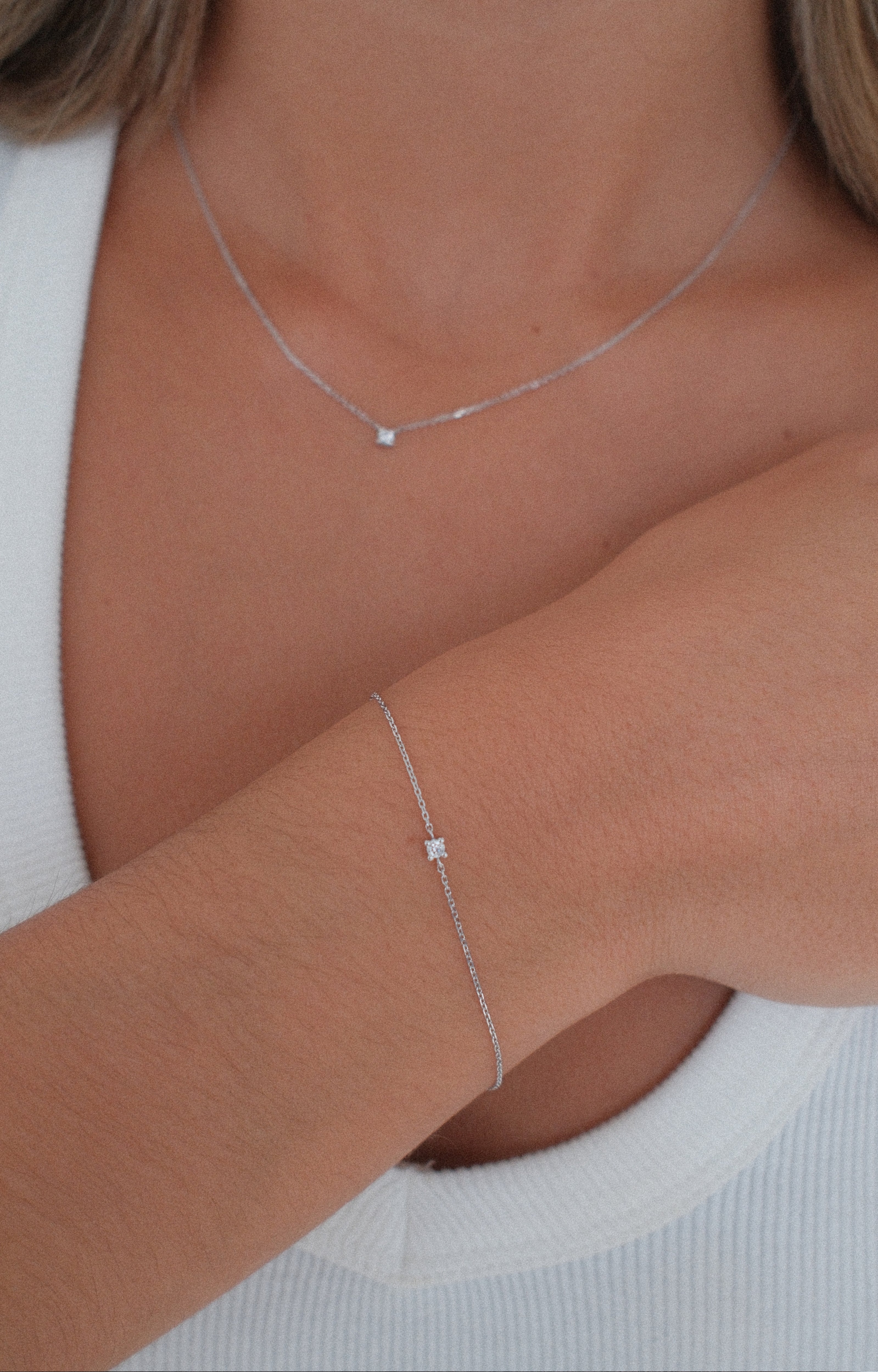 Add a touch of timeless elegance to your special day with our Newport Mini Diamond Bracelet, thoughtfully crafted as part of our exclusive Bridal Collection. This piece features a single petite square diamond in a minimalist band — perfect for brides seeking understated sophistication. Whether worn alone or layered with other pieces for a personalised look, this bracelet is designed to complement your wedding ensemble and remain a cherished keepsake long after “I do.”