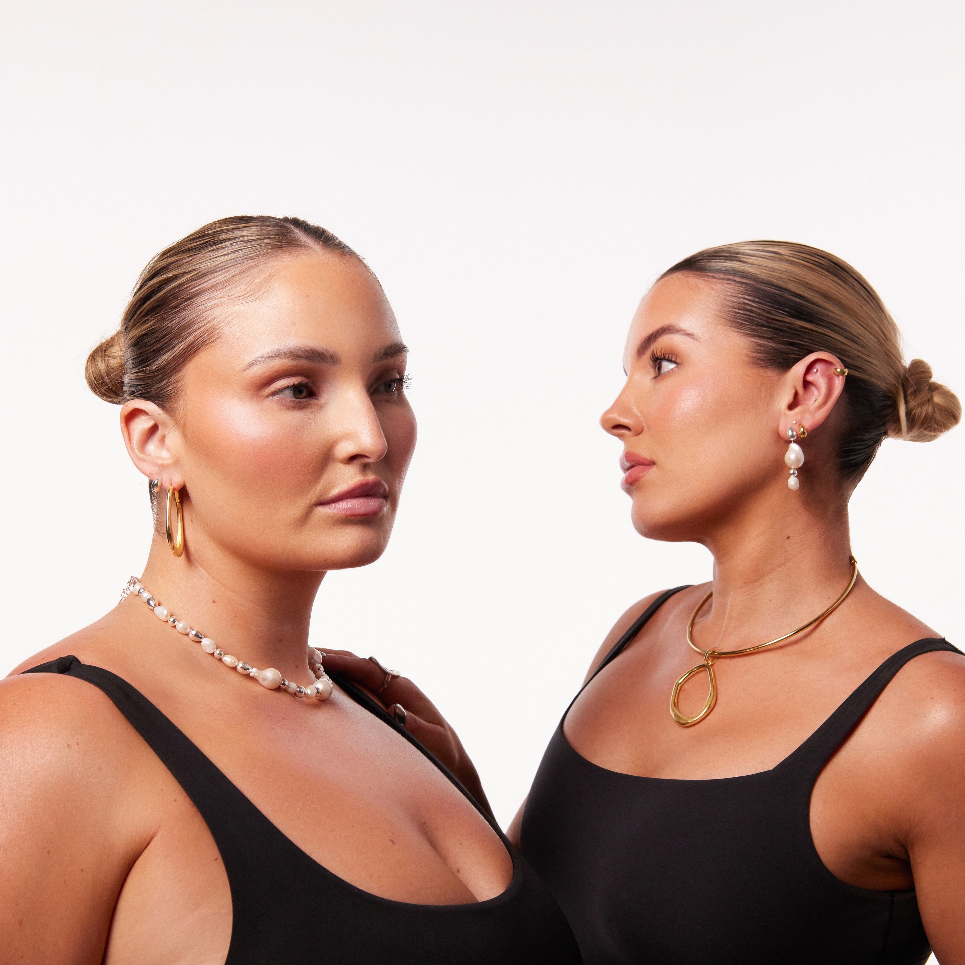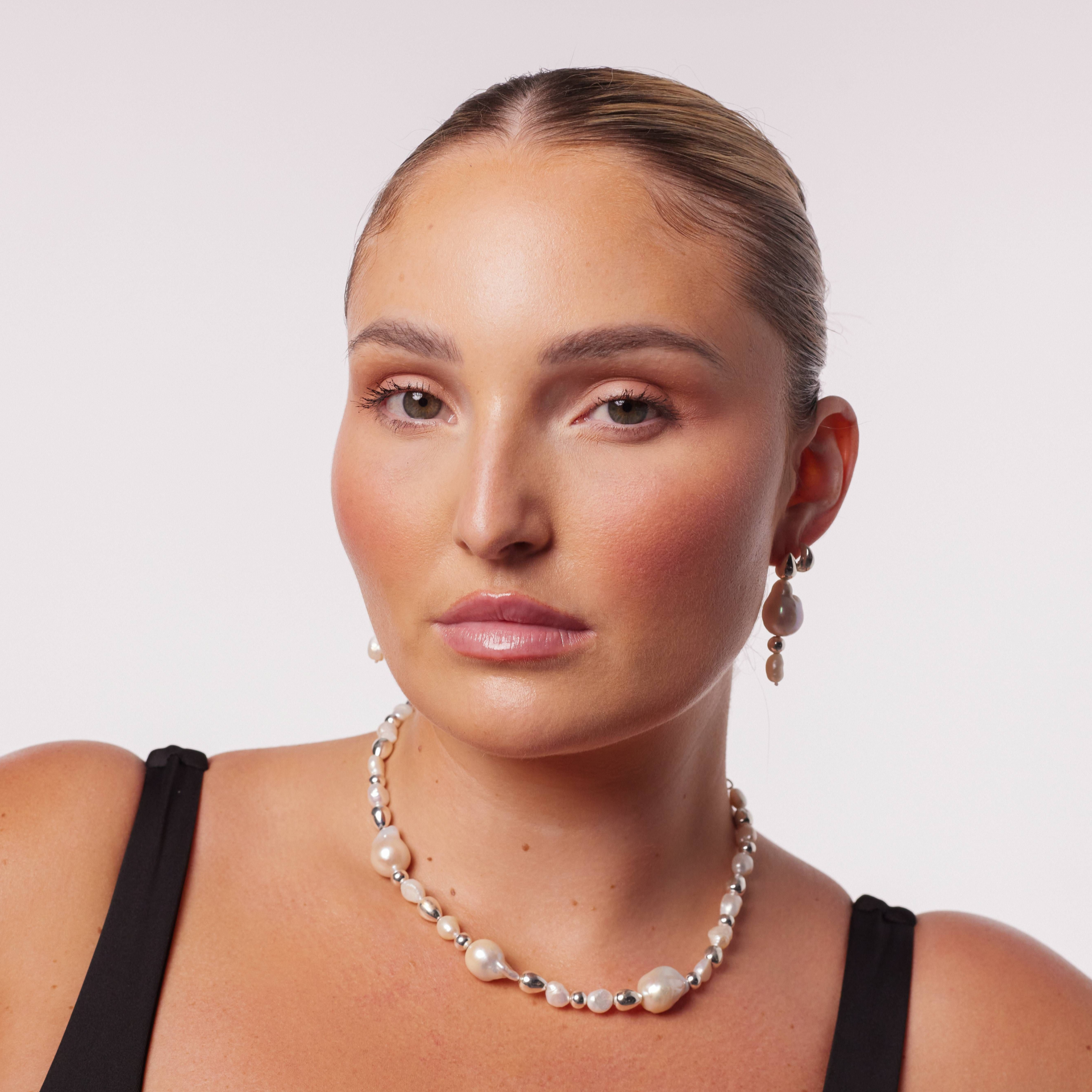 Designed to make a statement, these necklaces feature uniquely shaped freshwater pearls, ensuring no two pieces are alike. Available in both Gold and Silver.