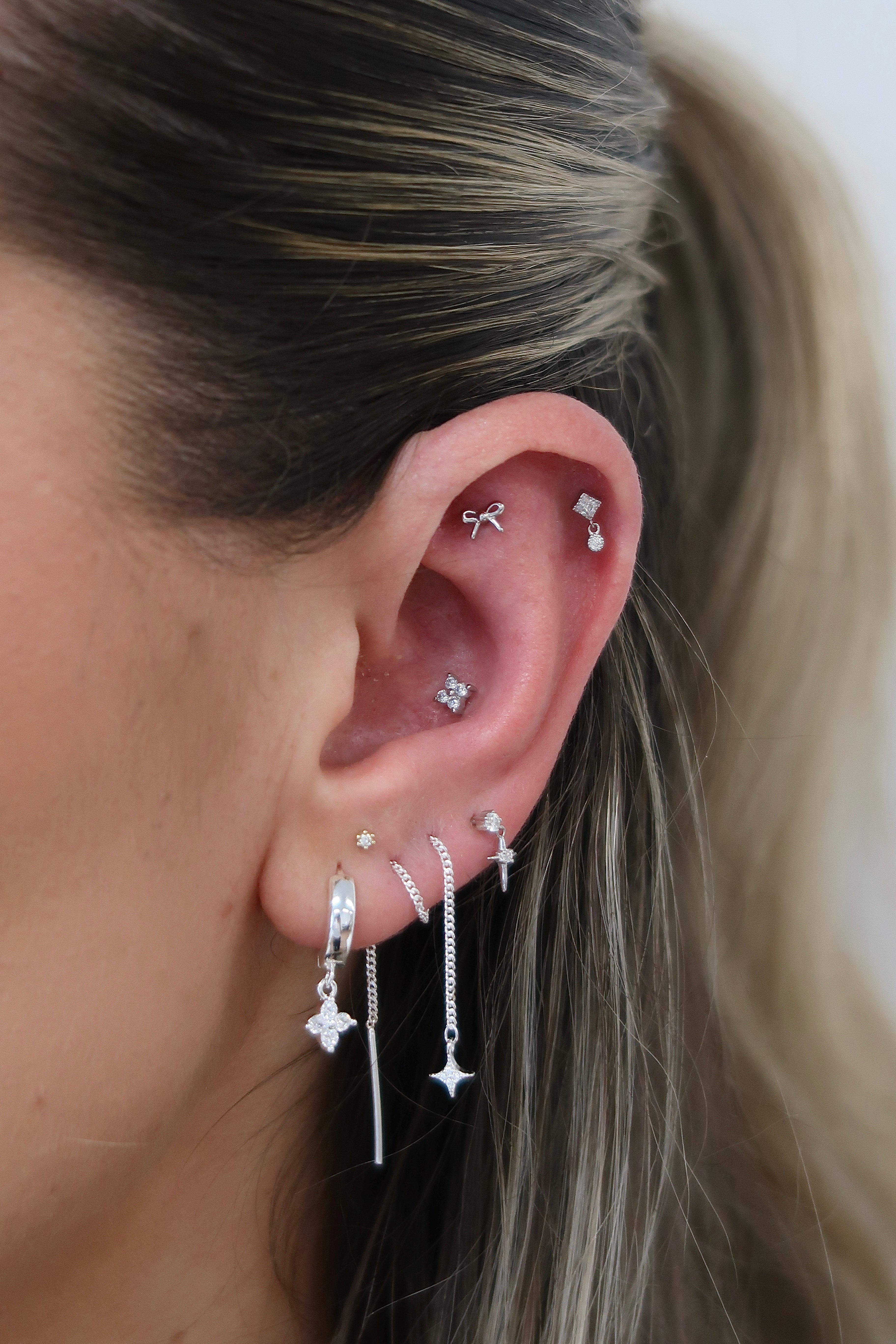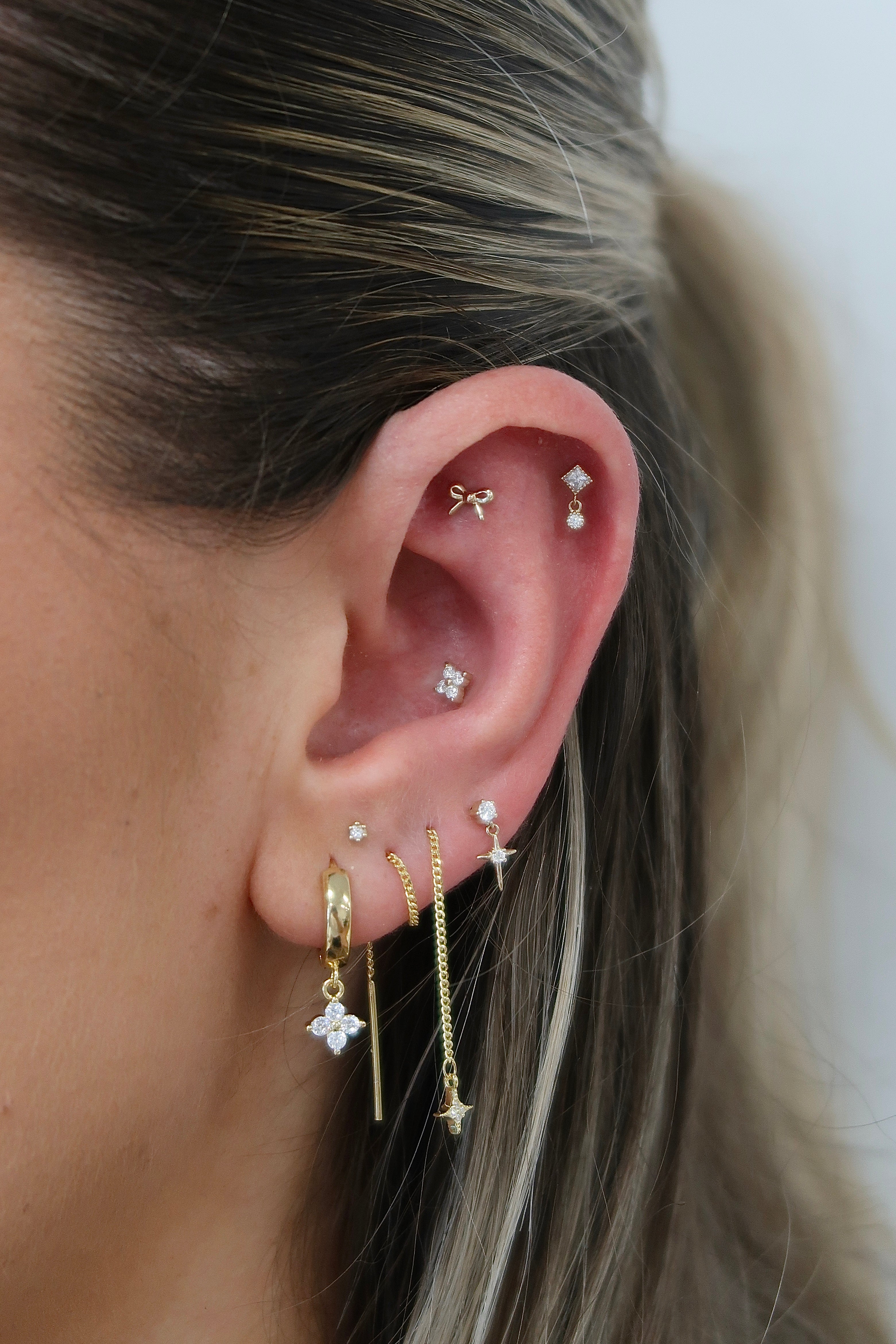 Our gorgeous York flat back studs are the perfect piercing to wear in the cartilage.